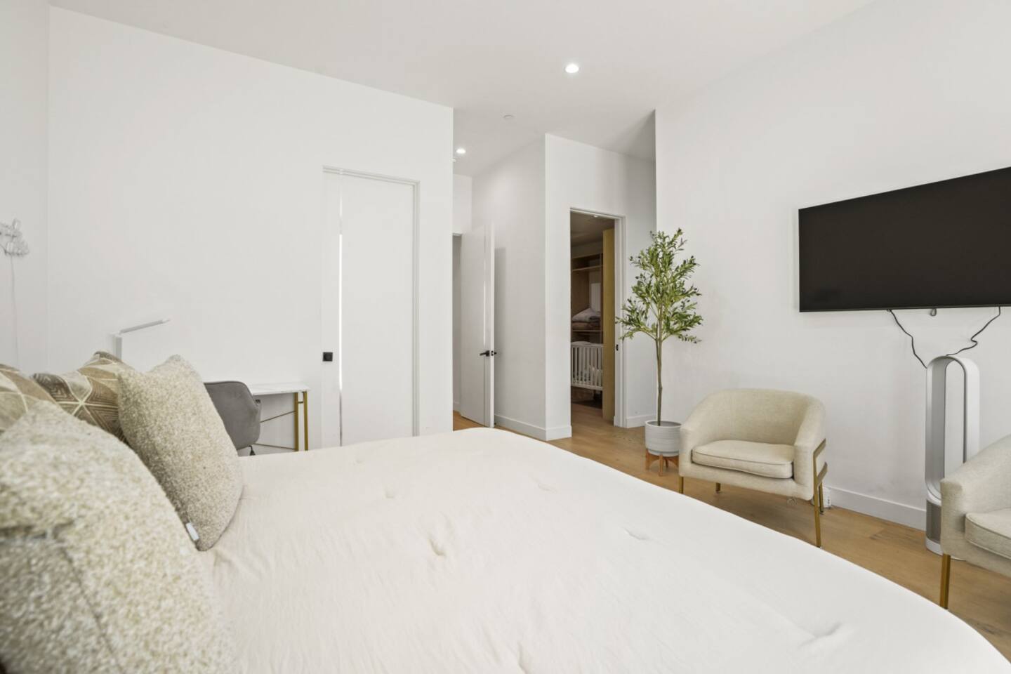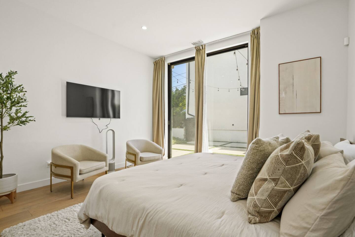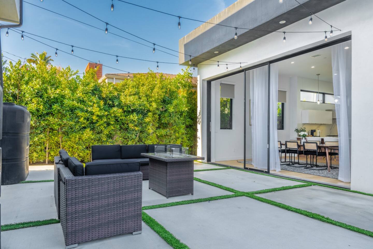 3000 sqft of modern luxury, thoughtfully furnished and decorated. Bright open-concept layout with two living areas. Primary Bedroom → King size bed → Dedicated workspace with desk → Smart TV → Blackout curtains → Very spacious walk-in closet → Spa-like marble bathroom with freestanding tub, rainfall shower Bedroom 2 & 3 → Bedroom 2 offers a queen size bed, bedroom 3 two full size beds → Closet space in both bedrooms → Shared spacious bathroom that can be accessed directly from both bedrooms with dual vanity and rainfall shower → Blackout curtains Outdoor Amenities → Fully fenced private yard – safe and secure for pets and kids → Comfortable outdoor lounge seating and BBQ grill for al fresco dining → Cozy fire pit with string lights – perfect for evening gatherings under the stars → Direct access from kitchen, dining, and master bedroom Work from home → Ultra-fast 569 Mbps WiFi + Ethernet ports for streaming and remote work → Dedicated workspace with desk → Massive 85" Samsung QLED Smart TV in living room + smart TVs in primary bedroom → Streaming-ready (Netflix, Disney+, etc.) – just log in and relax Family-Friendly Amenities → Crib, high chair, children’s books, toys, and baby essentials → Blackout shades in all bedrooms for better sleep → Extra pillows, blankets, and premium linens 🐾 Pet-Friendly → Pets allowed (small fee – please add to reservation) → Secure fenced yard and pet amenities provided Gourmet Kitchen & Luxuries → Fully equipped chef’s kitchen with high-end appliances and large island → Nespresso Vertuo machine, drip coffee maker, hot-water kettle, and tea selection → Spa-like primary bathroom with double vanity, deep soaking tub, and rainfall shower Practical Perks → Free private driveway parking for 2 cars + unlimited street parking → In-unit full-size washer and dryer with complimentary detergent → Easy keyless self check-in Enjoy a perfect blend of modern luxury, family comfort, and pet-friendly outdoor living in prime Mar Vista – just minutes from Santa Monica and Venice beaches. Don't hesitate to reach out in case you have any questions or special inquiries! Looking forward to hosting you!
