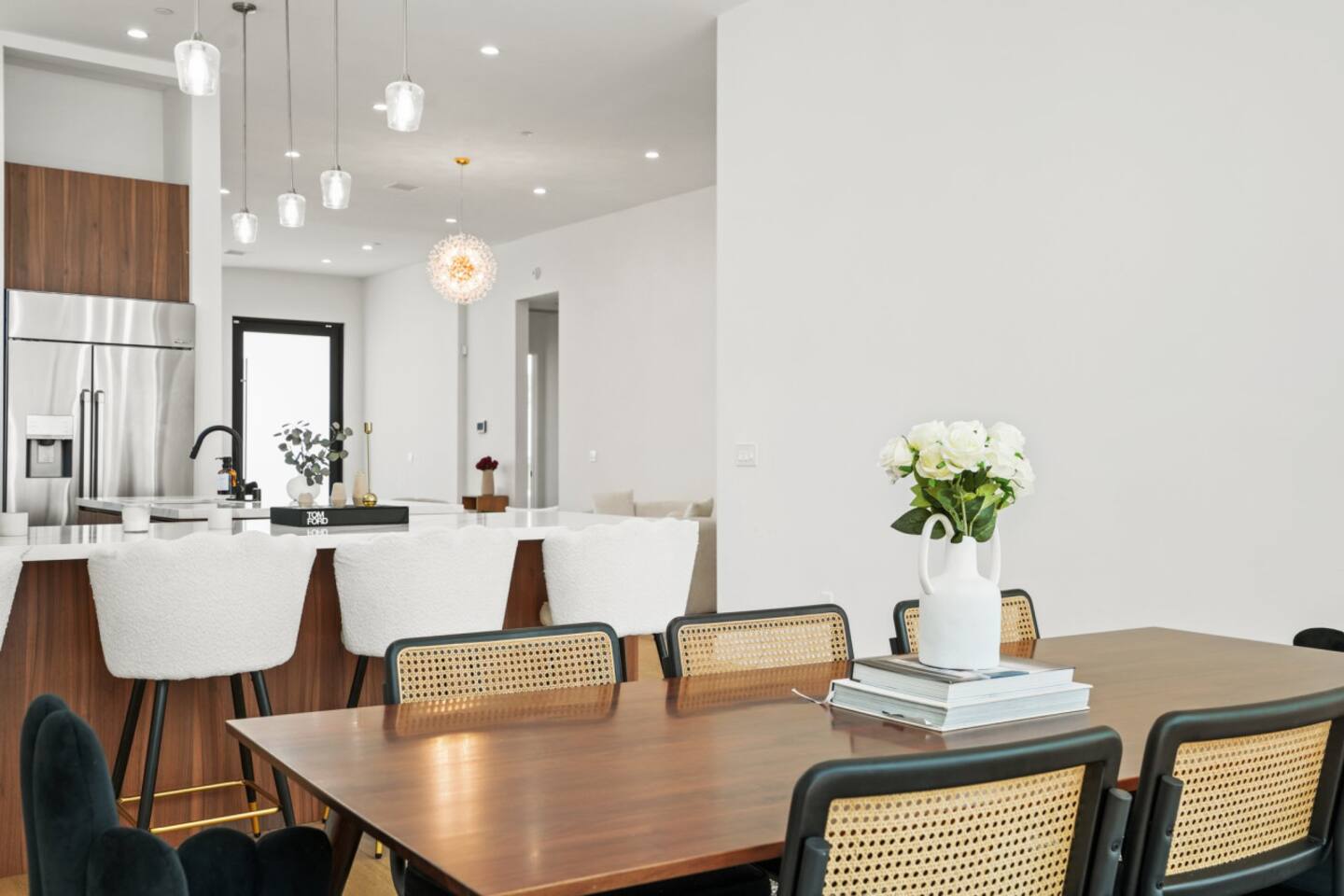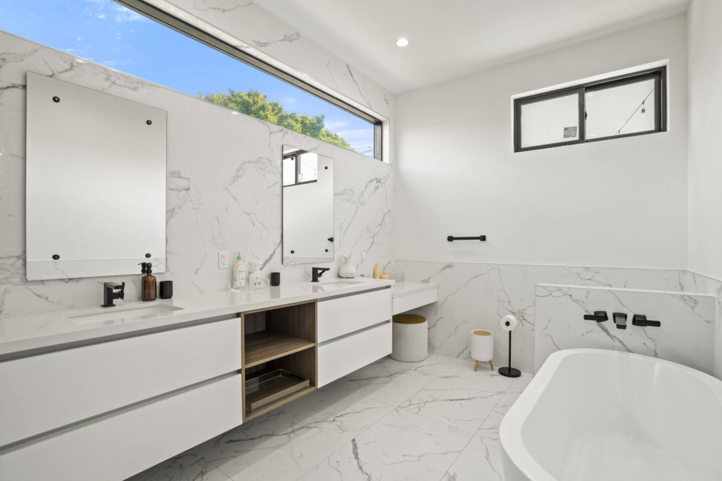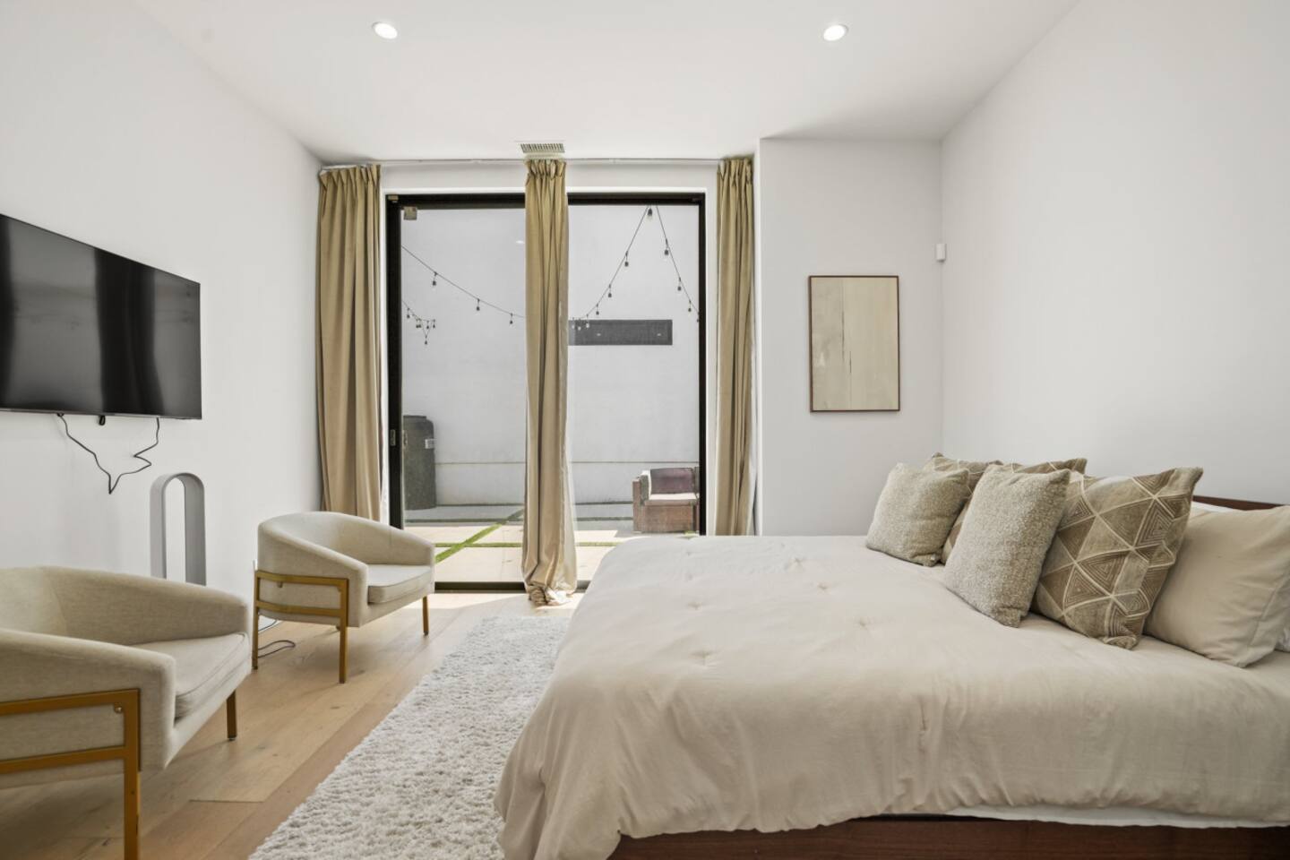 3000 sqft of modern luxury, thoughtfully furnished and decorated. Bright open-concept layout with two living areas. Primary Bedroom → King size bed → Dedicated workspace with desk → Smart TV → Blackout curtains → Very spacious walk-in closet → Spa-like marble bathroom with freestanding tub, rainfall shower Bedroom 2 & 3 → Bedroom 2 offers a queen size bed, bedroom 3 two full size beds → Closet space in both bedrooms → Shared spacious bathroom that can be accessed directly from both bedrooms with dual vanity and rainfall shower → Blackout curtains Outdoor Amenities → Fully fenced private yard – safe and secure for pets and kids → Comfortable outdoor lounge seating and BBQ grill for al fresco dining → Cozy fire pit with string lights – perfect for evening gatherings under the stars → Direct access from kitchen, dining, and master bedroom Work from home → Ultra-fast 569 Mbps WiFi + Ethernet ports for streaming and remote work → Dedicated workspace with desk → Massive 85" Samsung QLED Smart TV in living room + smart TVs in primary bedroom → Streaming-ready (Netflix, Disney+, etc.) – just log in and relax Family-Friendly Amenities → Crib, high chair, children’s books, toys, and baby essentials → Blackout shades in all bedrooms for better sleep → Extra pillows, blankets, and premium linens 🐾 Pet-Friendly → Pets allowed (small fee – please add to reservation) → Secure fenced yard and pet amenities provided Gourmet Kitchen & Luxuries → Fully equipped chef’s kitchen with high-end appliances and large island → Nespresso Vertuo machine, drip coffee maker, hot-water kettle, and tea selection → Spa-like primary bathroom with double vanity, deep soaking tub, and rainfall shower Practical Perks → Free private driveway parking for 2 cars + unlimited street parking → In-unit full-size washer and dryer with complimentary detergent → Easy keyless self check-in Enjoy a perfect blend of modern luxury, family comfort, and pet-friendly outdoor living in prime Mar Vista – just minutes from Santa Monica and Venice beaches. Don't hesitate to reach out in case you have any questions or special inquiries! Looking forward to hosting you!