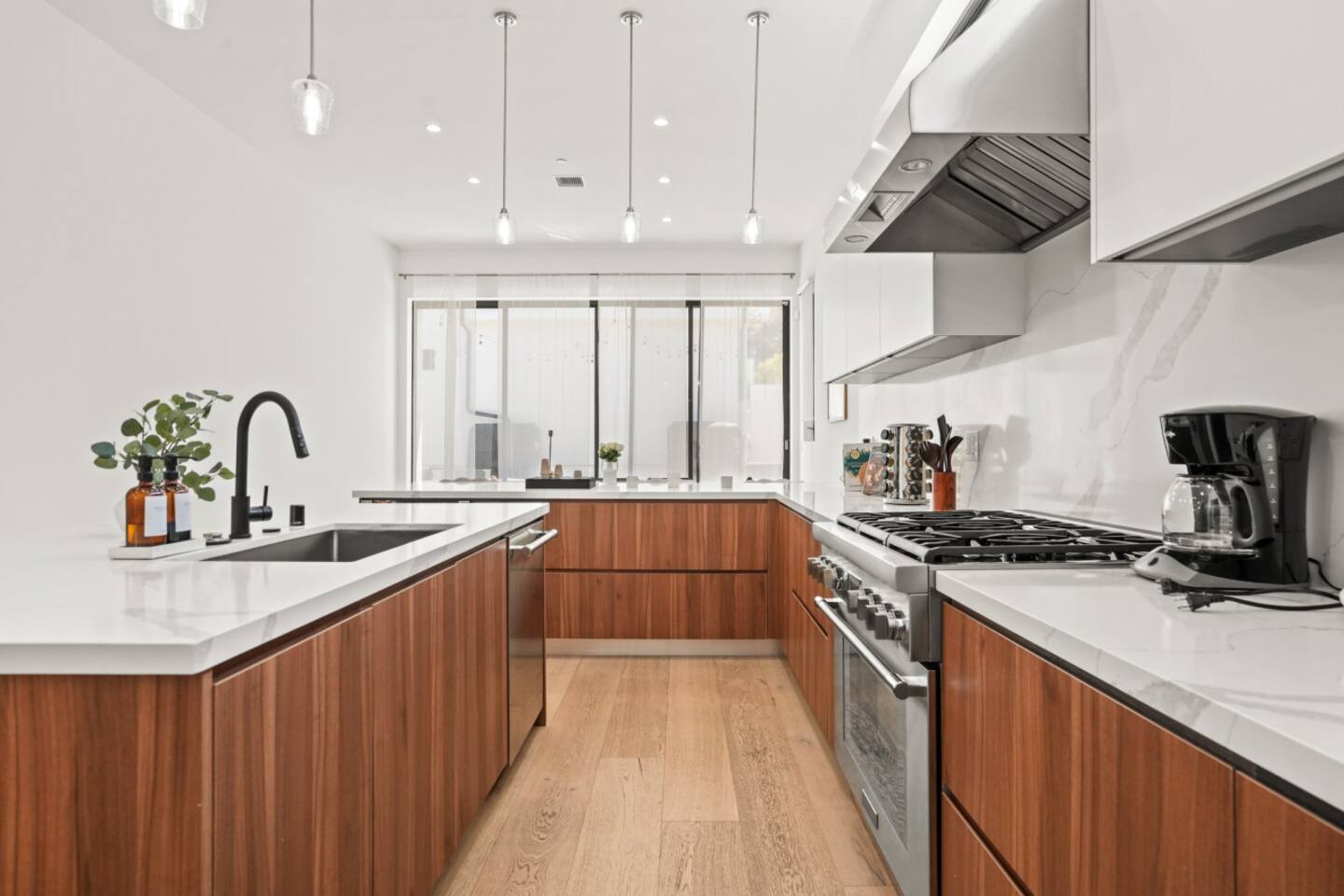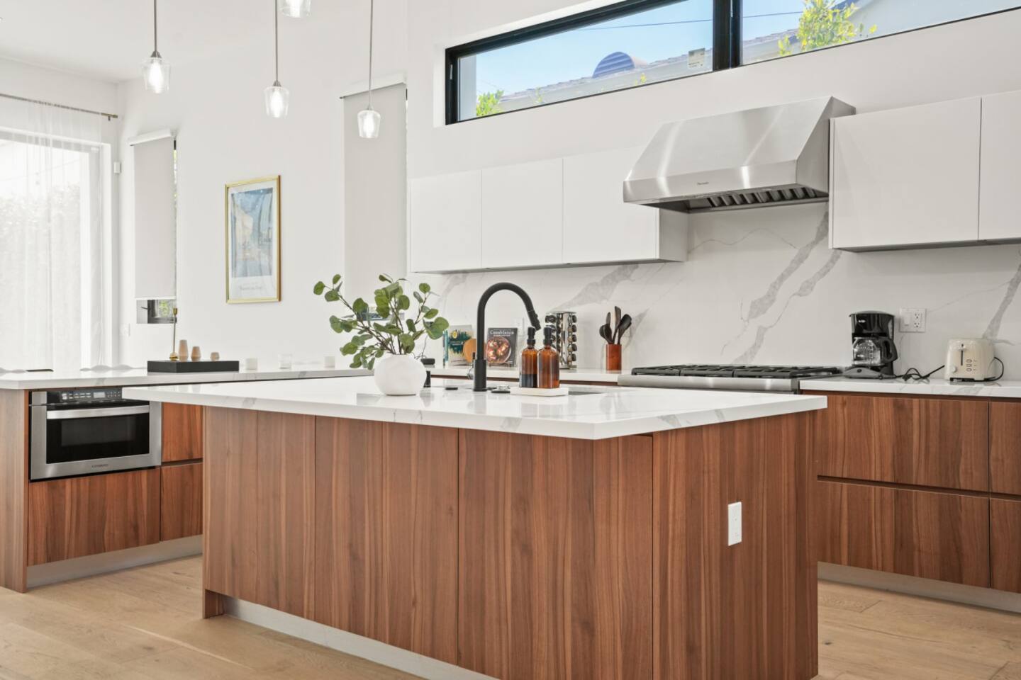 Welcome to our spacious 14-ft ceilings home on a quiet, tree-lined Mar Vista cul-de-sac. 3 bedrooms, 2.5 bathrooms and we are pet-friendly! Enjoy bright, modern comfort with elegant marble and walnut finishes and a breezy open-plan layout. Prepare meals in the fully equipped chef’s kitchen, stream movies on the massive 85" QLED Smart TV, then relax by the fire pit outside. Central LA location with easy access to LAX, Beverly Hills, Santa Monica, Venice, Beverly Hills.