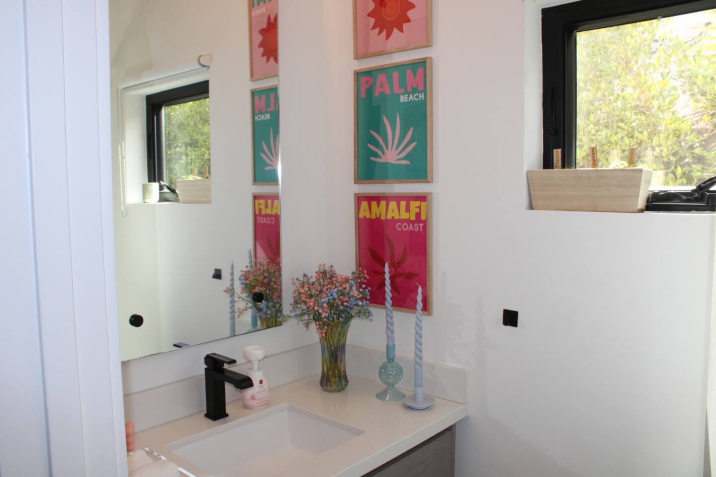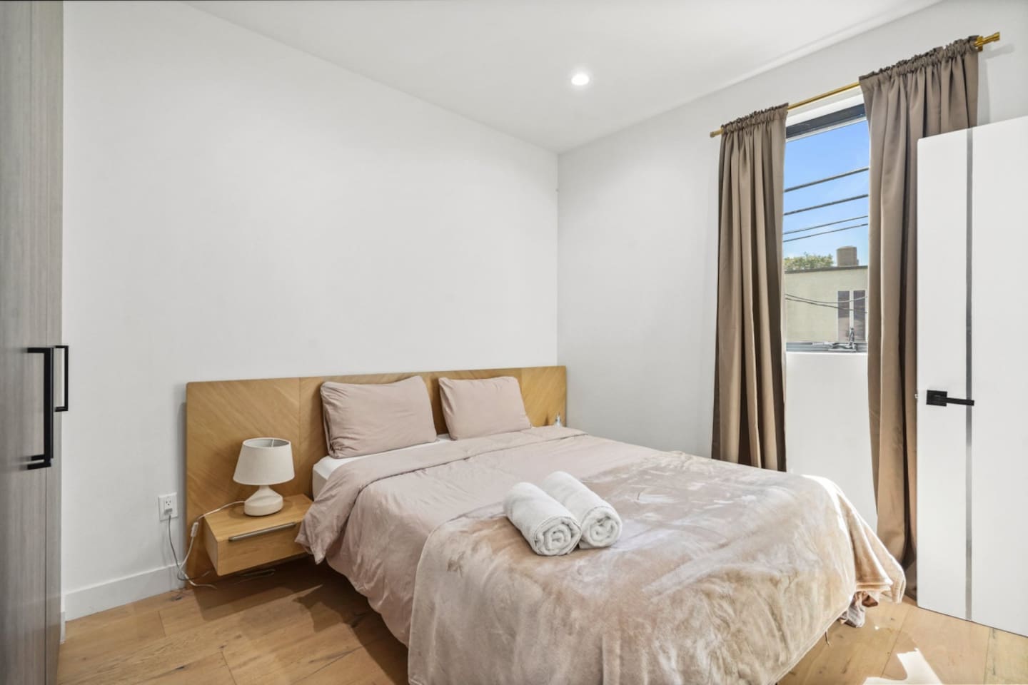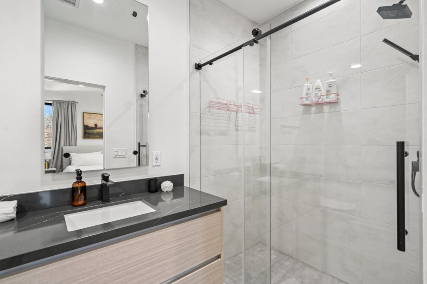 ✓ The Space ✓ Downstairs: Bright open-concept living room, dining area for 6, and fully equipped modern kitchen with marble countertops, walnut cabinets, and high-end appliances—ideal for cooking and gathering. ✓ Upstairs: Quiet private bedrooms and dedicated workspace with natural light—perfect for restful sleep and productive remote work. ✓ Bedrooms: Master Suite: Plush king bed, mounted Smart TV, hotel-quality linens, large wardrobe, and private en-suite bathroom Bedroom 2: Comfortable queen bed, blackout curtains for deep sleep, premium linens, and built-in closet ✓ Bathrooms: • Master en-suite: Luxurious rainfall shower with dual heads, marble finishes • Second full bathroom: Spacious rainfall shower, modern fixtures • Main-level powder room: Convenient half bath for guests Fresh plush towels, premium toiletries, and hair dryer provided ✓ Fully Equipped Kitchen: Cook like home with stainless steel appliances, 5-burner gas stove, large fridge, microwave, toaster, SMEG coffee maker, kettle, quality cookware, and ample marble prep space. ✓ Private Outdoor Patio: Fenced patio with cozy seating and string lights—your sunny LA spot for morning coffee, evening relaxation, or pet playtime. ✓ Laptop-Friendly Workspace: Dedicated desk, chair, lightning-fast WiFi + Ethernet, and abundant natural light—perfect for remote work and video calls. ✓ Family & Pet-Friendly Amenities: • Travel crib & high chair (available on request) • Board games for family evenings • Fully fenced yard ideal for pets • Blackout curtains for better sleep • Pet-friendly throughout ✓ Guest Favorites ★ Secure gated private parking (lockable driveway—rare in LA!) ★ King master suite with Smart TV & luxury bedding ★ 2.5 bathrooms with rainfall showers & marble finishes ★ 75" Samsung Smart TV in living room ★ High-speed WiFi + dedicated workspace ★ Gourmet kitchen with SMEG coffee maker ★ In-unit washer & dryer ★ Pet-friendly fenced patio ★ Kid-friendly extras on request ★ Easy self check-in with keypad