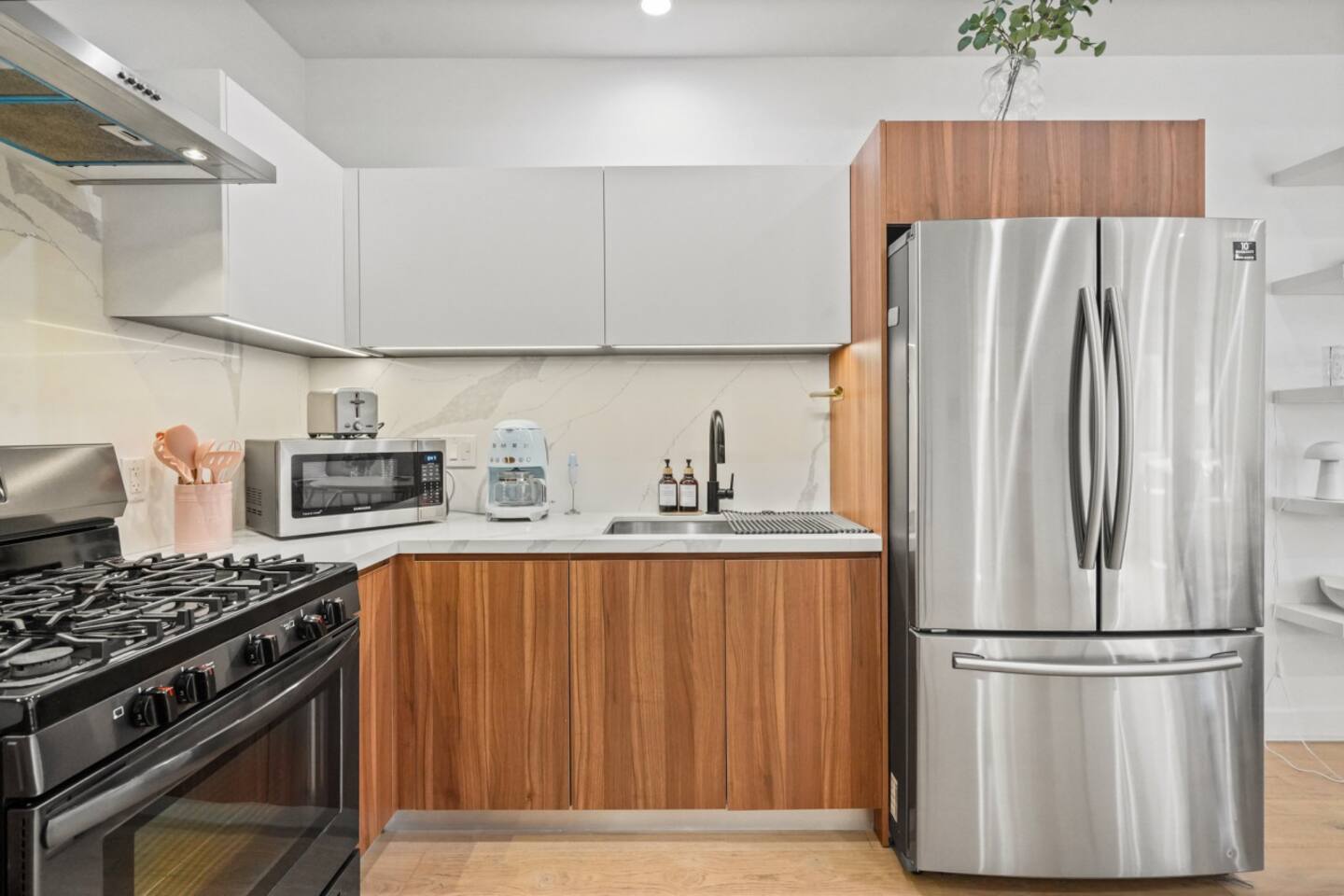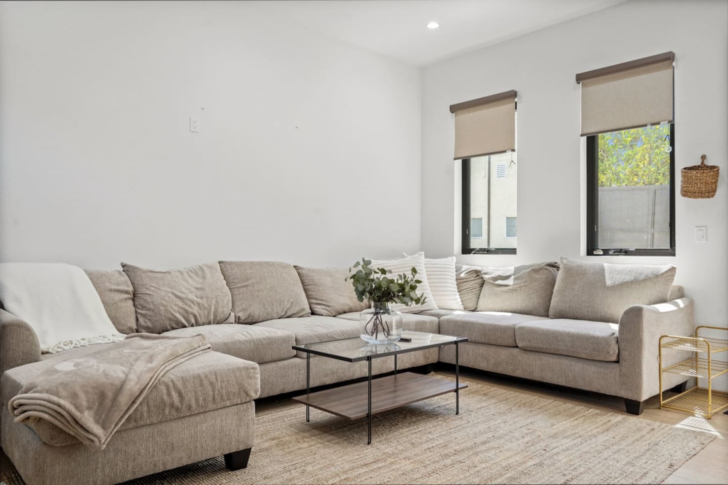 ✓ Modern Scandinavian Townhouse in LA ✓ 2BR • 2.5BA • Pet-Friendly • Secure Gated Parking ✓ Brand-new Nordic-style home with king master suite, 75" Smart TV, fast WiFi, dedicated workspace, and private pet-friendly patio. ✓ Key features: Rainfall showers • In-unit washer/dryer • Smart TVs • Marble finishes • Fully equipped kitchen ✓ Ideal for couples, families, remote workers, and guests with pets. ✓ Rare secure lockable parking + fenced outdoor space