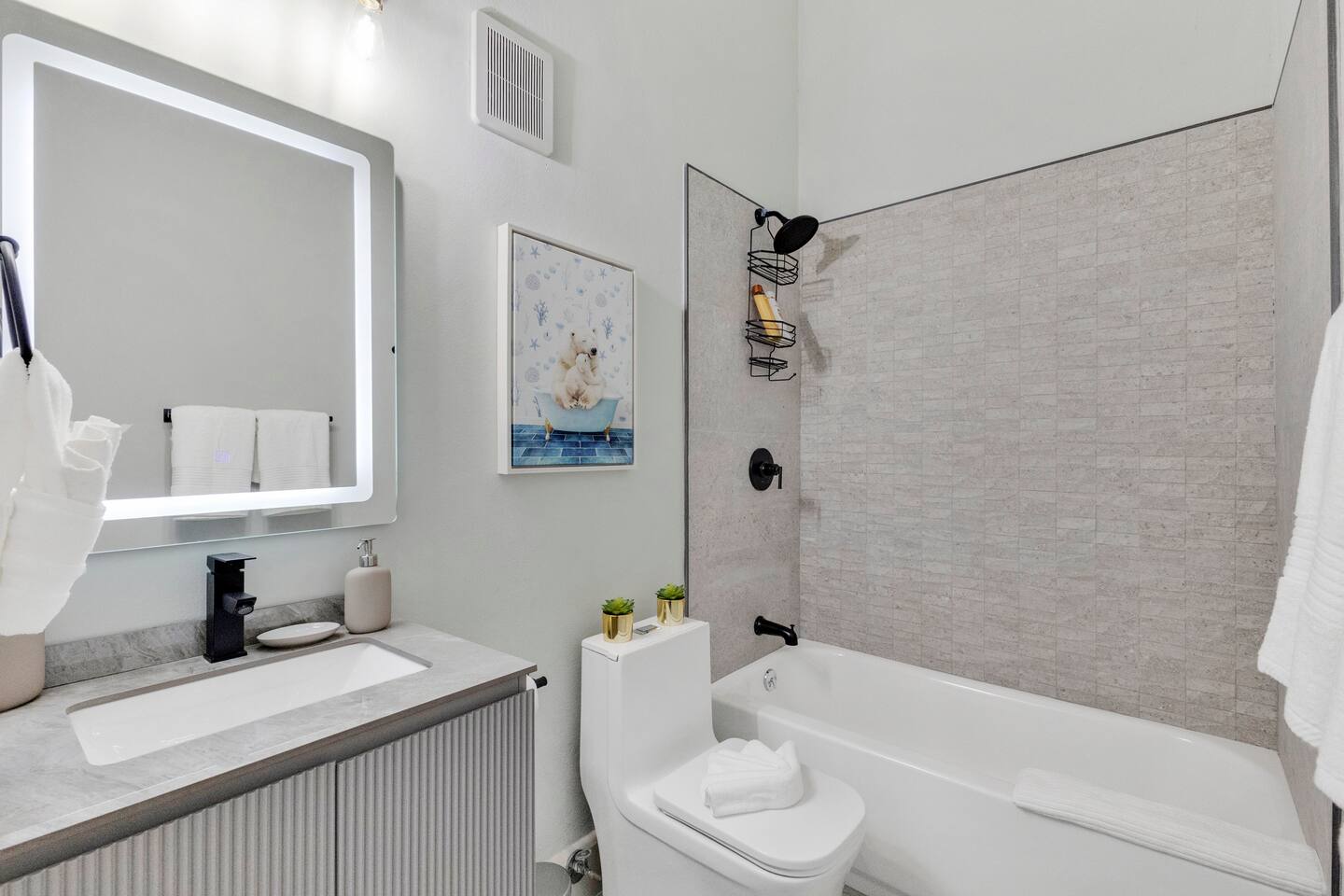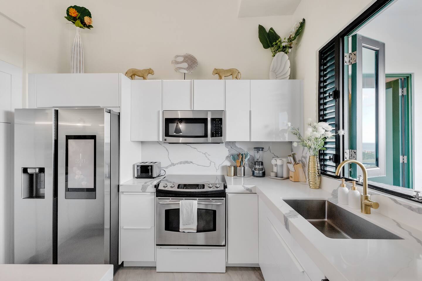 ✓ Your Property (dream-stay vibe, sensory, benefits > features) → 4 bedrooms | 4 full bathrooms sleeping up to 10 guests → 2 king bedrooms with premium linens → 1 queen bedroom for flexible sleeping arrangements → Bunk room with 4 sleep spots—perfect for kids or extra guests → Private balcony with panoramic ocean and golf course views → Freshly remodeled throughout (2025)—everything is pristine and new → Open-concept living with natural light flooding every room ✓ Entertainment & Comfort: → 86" Samsung Smart TV for epic movie nights → Oversized sectional sofa—everyone fits comfortably → High-speed WiFi throughout → Streaming apps ready to go → Air conditioning in every room ✓ Chef-Ready Kitchen: → The kind of kitchen that makes you actually want to cook on vacation: → Nespresso machine for morning rituals → Wine fridge for sunset celebrations → Filtered water system—no buying bottles → Dishwasher for easy cleanup → Premium appliances, cookware, and all essentials → Large dining table for family meals → Island seating for casual conversations ✓ Outdoor Paradise: → Private balcony with sunrise ocean views → Golf course vistas stretching to the horizon → Perfect for morning coffee, sunset cocktails, or stargazing ✓ Family Amenities: → Pack-n-play and high chair available on request → Board games and entertainment for all ages → Beach essentials → In-unit washer and dryer ✓ Resort Access Included: → Cluster 7 pool and playground—steps from your door → Private beach access → Championship golf courses at Rio Mar (not included) → On-site restaurants and bars ✓ Practical Perks: → 2 dedicated parking spots behind two security gates → Gated community with 24/7 security → Backup generator—uninterrupted comfort → Water reserve system—always prepared → Easy check-in process to
